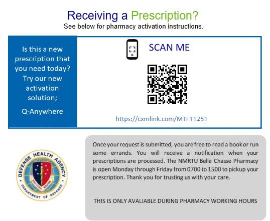 If you’re running out of medications and can’t reach a pharmacy staff member, please come in so we can help you directly. In the case of an outage, please see the base mobile app or Facebook page for any unexpected closures before heading to the MTF.